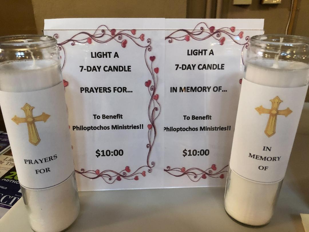 The Philoptochos is hosting a fundraiser to benefit the varies Philoptochos Ministries. Please consider lighting a candle "in Memory of" or "Prayers for" .